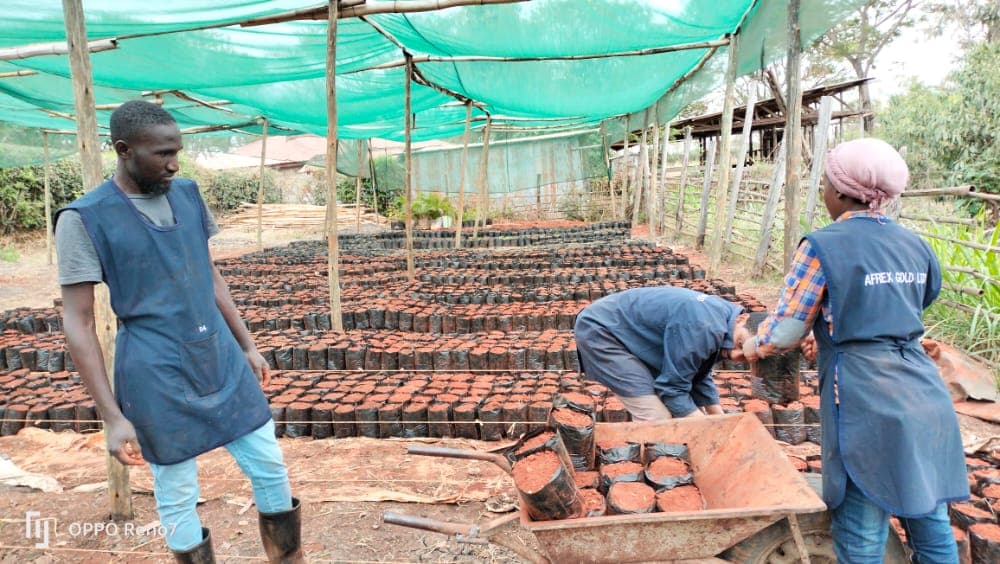 As Afrex Gold, we put community development and nature at the heart of its work. We company works with over 1,200 farmers country wide, local exporters, direct buyers and wholesalers all over the world. Our overarching mission of Afrex Gold is to give back to society and empower the community to care about the environment, as well as empower farmers to earn a decent income from their harvest. Through our seedlings nursery, we are looking at propagating and planting over 80,000 trees in Kangundo area, working with over 400 farmers and restoring more than 200 Ha and impacting over 1500 people. (We have so far provided over 11,000 trees to farmers in the area).